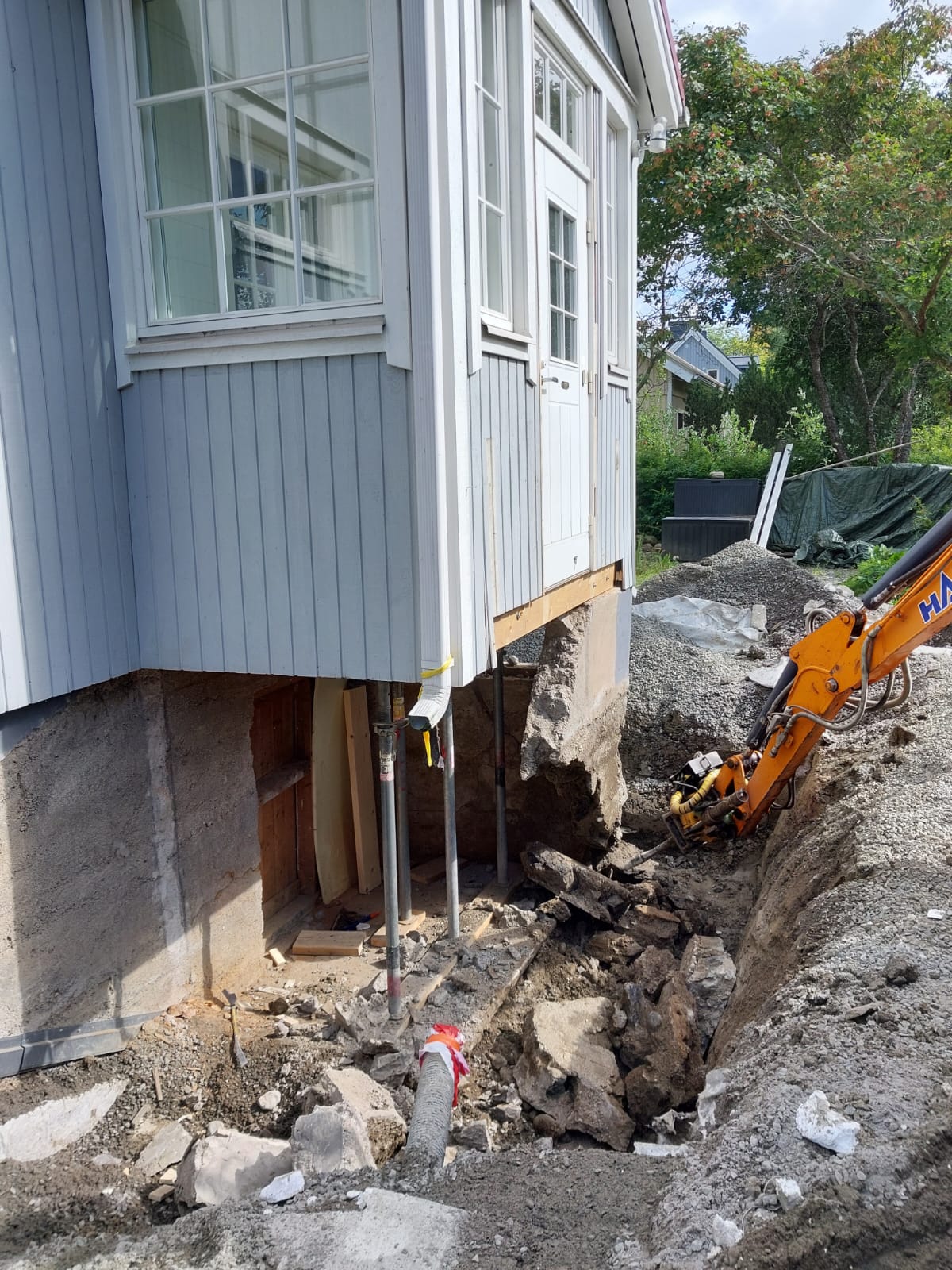 Useita omakotitalon valesokkelirakenteiden korjauksia ja kosteusvauriokorjauksia